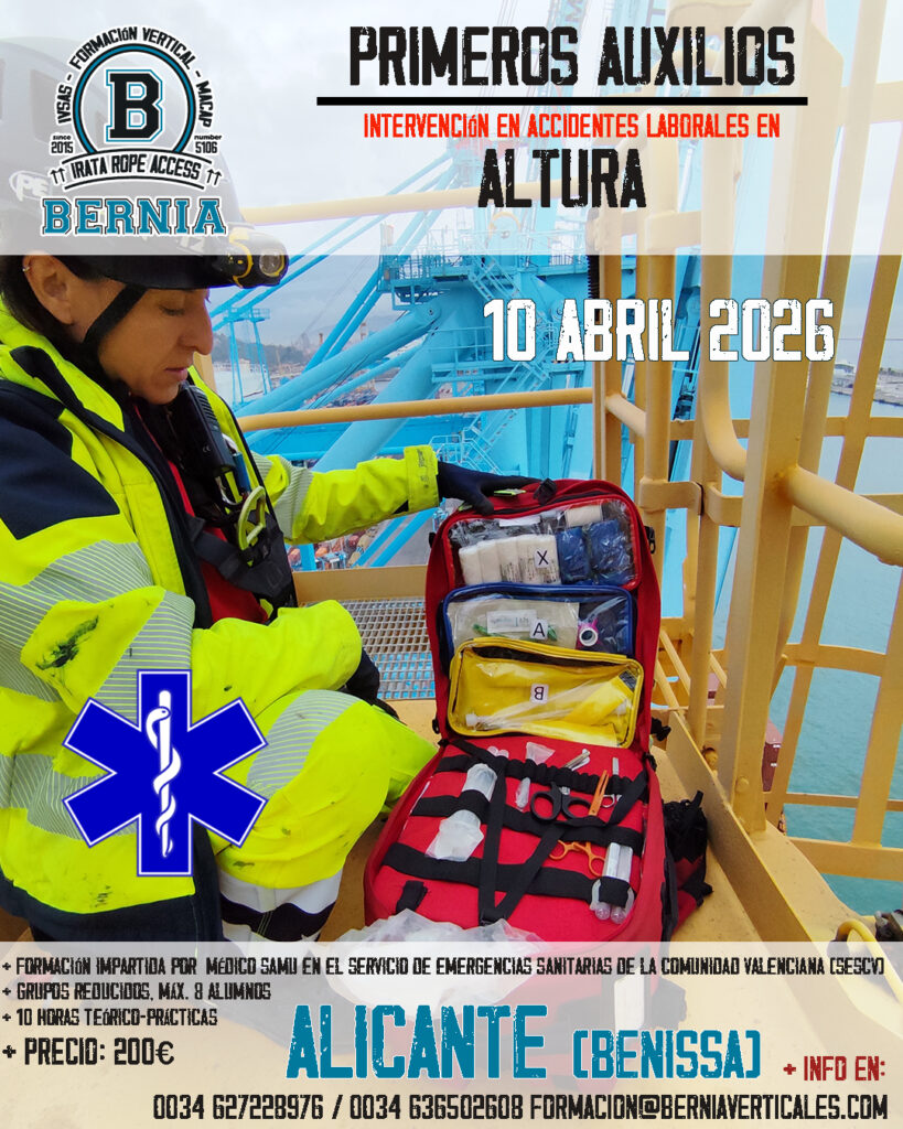 Esta formación se realiza en colaboración con el personal médico del SAMU en la comunidad valenciana, especializado en rescates aéreos y de difícil acceso, con experiencia en entornos reales, siendo una de las formaciones más completas que pueden ofrecerse en primeros auxilios específicos para trabajos en altura y accesos por cuerda.